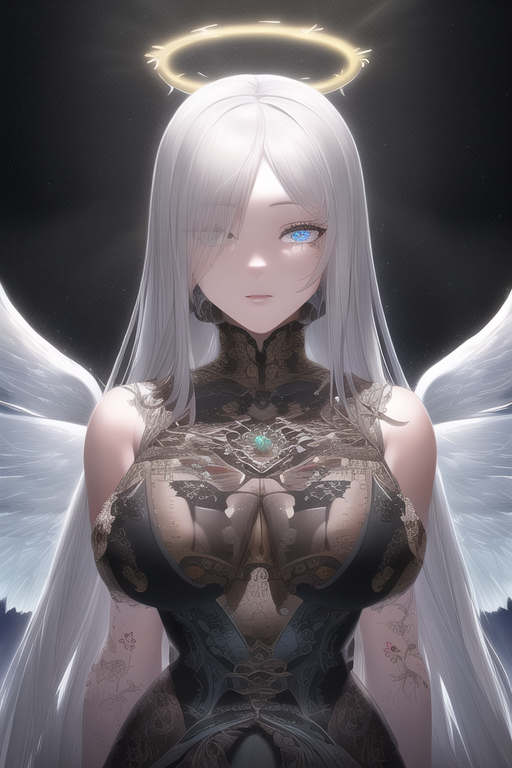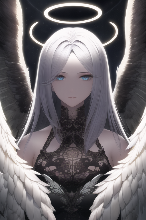 프롬프트 : {{{masterpiece}}}, {{{best quality}}}, {{{illustration}}},{{{ultra-detailed}}},{{{hyper detailed}}},{{{highres}}},Cinematic light,8k,official art,ligne claire,intricate_detail, {{{high resolution illustration}}},silver hair, {{{wings}}}, {{{finely detailed beautiful eyes}}}, {{{beautiful detailed eyes}}}, {{{detailed face}}}, standing, night town, bishoujo, looking at viewer, blue archive,mechanical halo,light swirling around the character